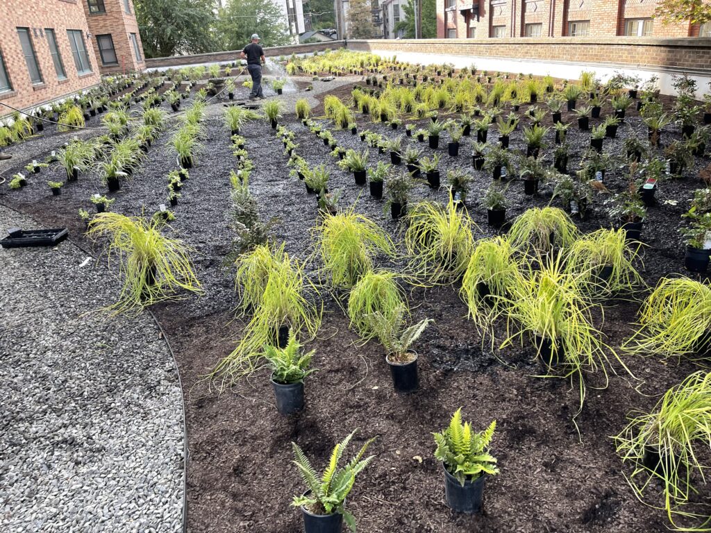 Complete landscape installation — plants, trees, shrubs, and ground cover